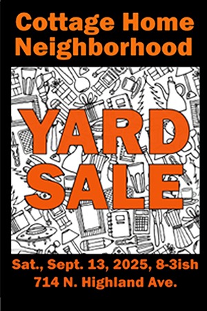 Find your next treasure at the Cottage Home Neighborhood Yard Sale. Start your day in the Cottage Home Community Space at 714 N. Highland Ave. and explore the Cottage Home neighborhood for more treasure hunting. ... Read more